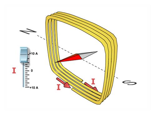 2.Corrente eléctrica a 10 Amperes, a bússola tem uma variação de 90º do Norte verdadeiro.